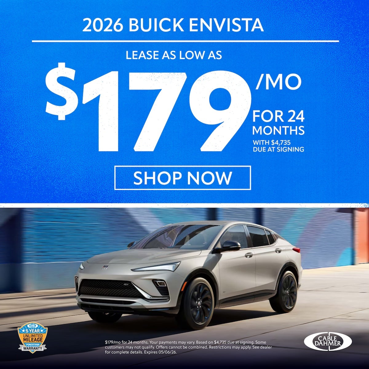 $179/mo for 24 months. Your payments may vary. Based on $4,735 due at signing. Some customers may not qualify. Offers cannot be combined. Restrictions may apply. See dealer for complete details. Expires 05/06/26.