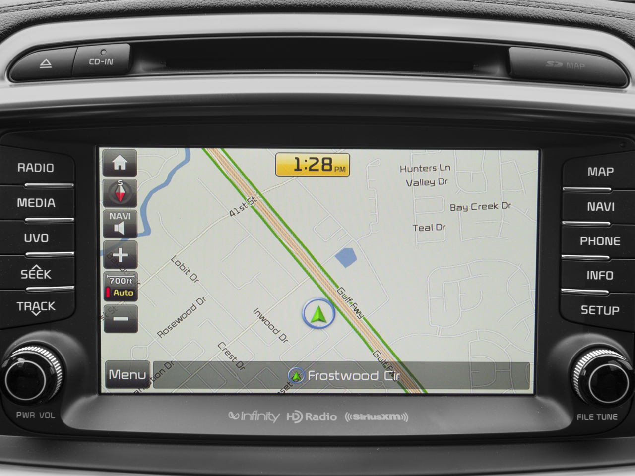 - The vehicle is equipped with a built-in voice activated navigation system.