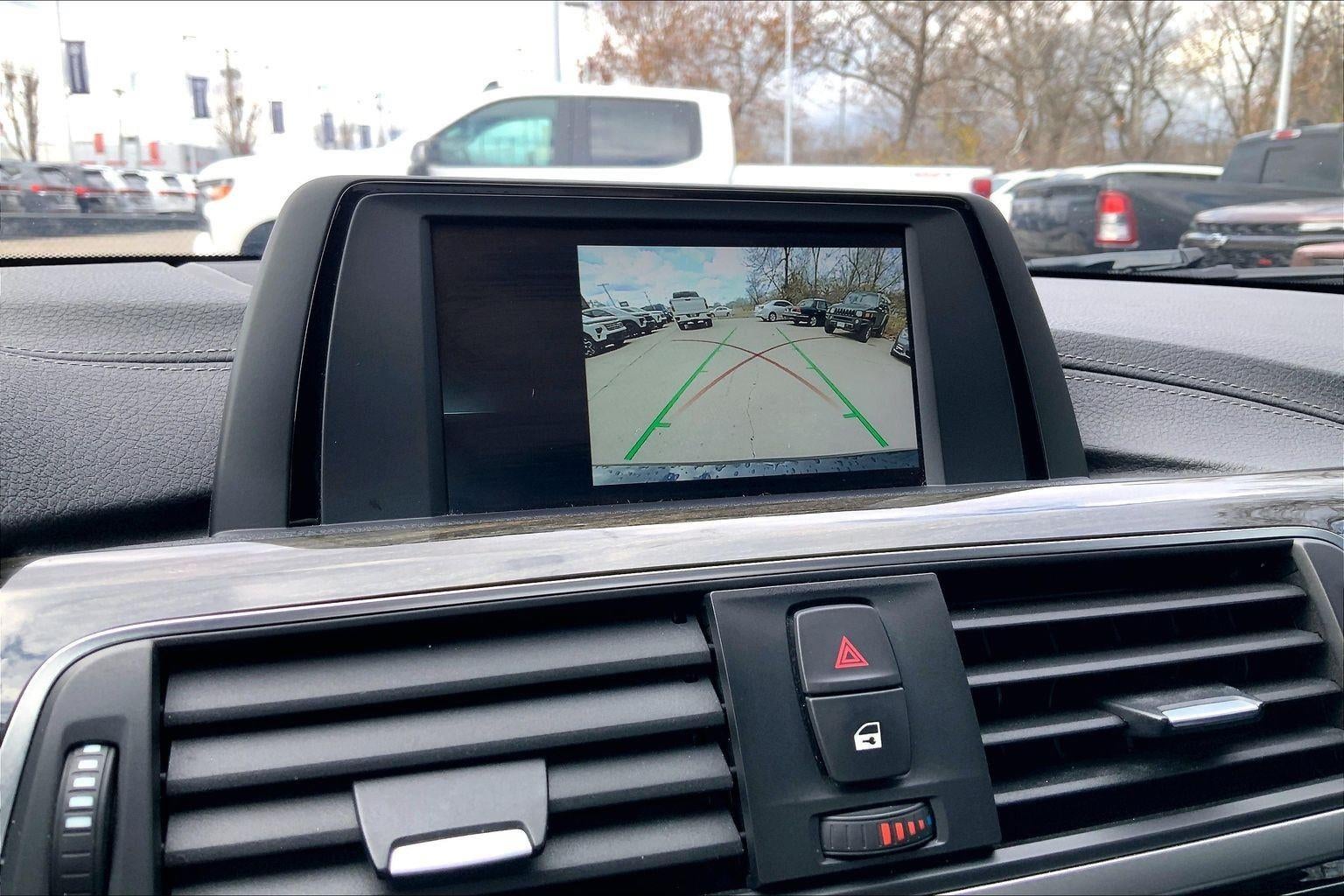 - The vehicle is equipped with a camera that displays an image of the area behind the vehicle on an interior display.