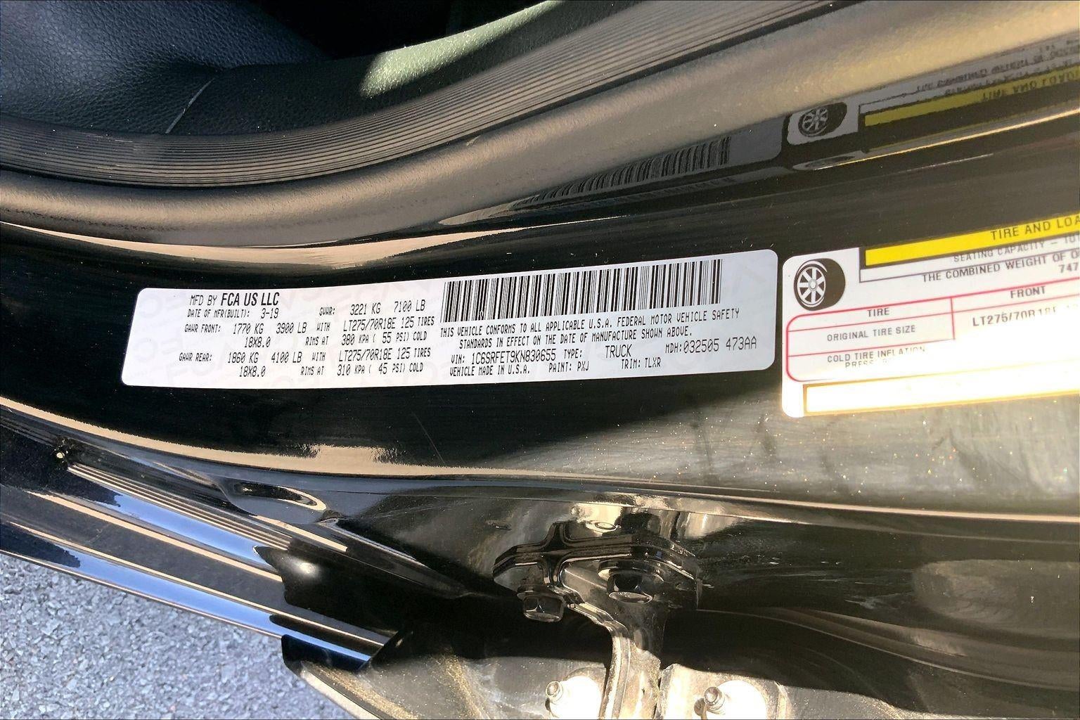 This 2019 Ram 1500 Rebel, has a Diamond Black Crystal Pearlcoat exterior and a Red/Black interior. Please call us at 816-203-1102 and reference stock number JT1754A for further details. No Accidents! One Owner!