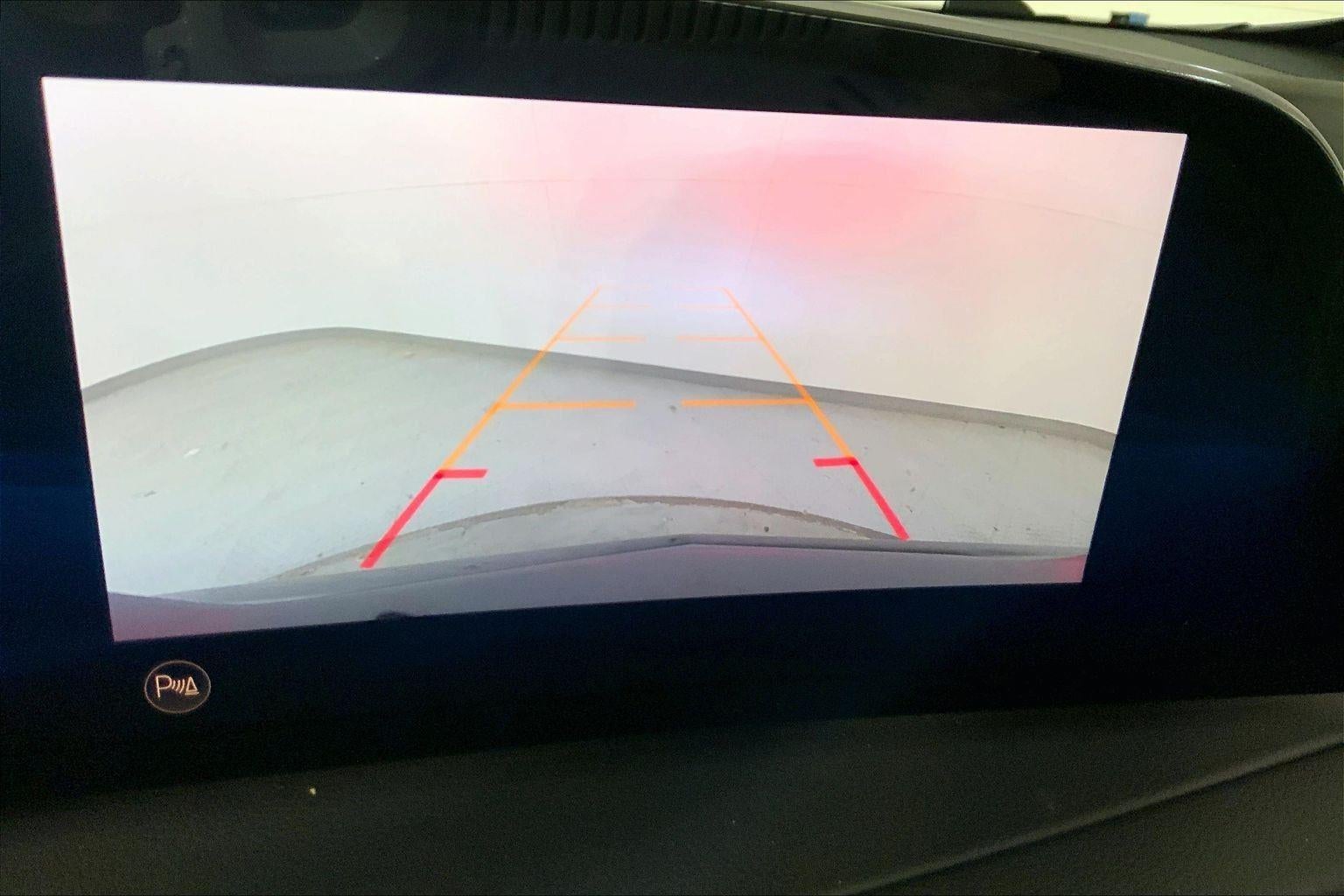 - The vehicle is equipped with a camera that displays an image of the area behind the vehicle on an interior display.