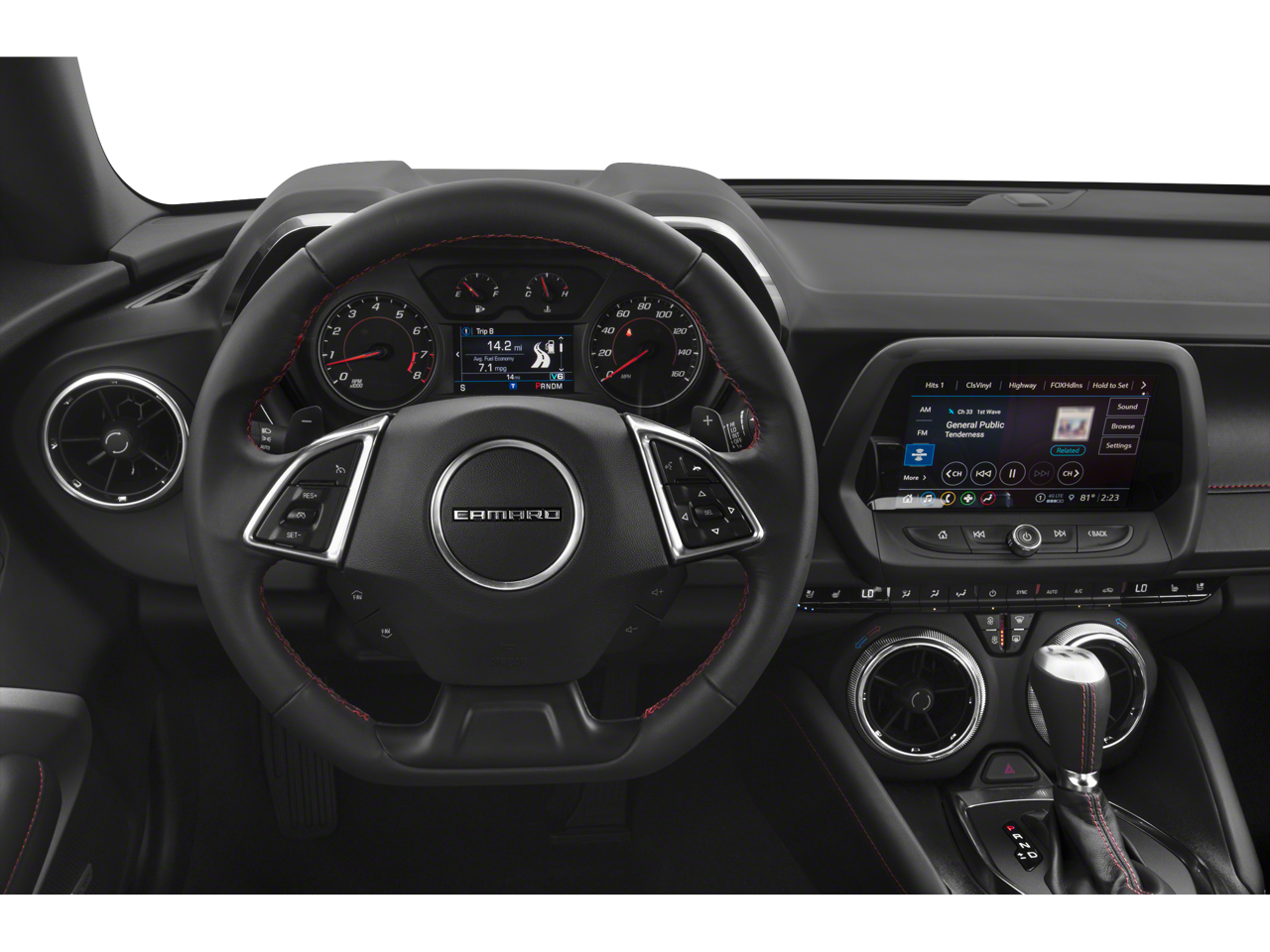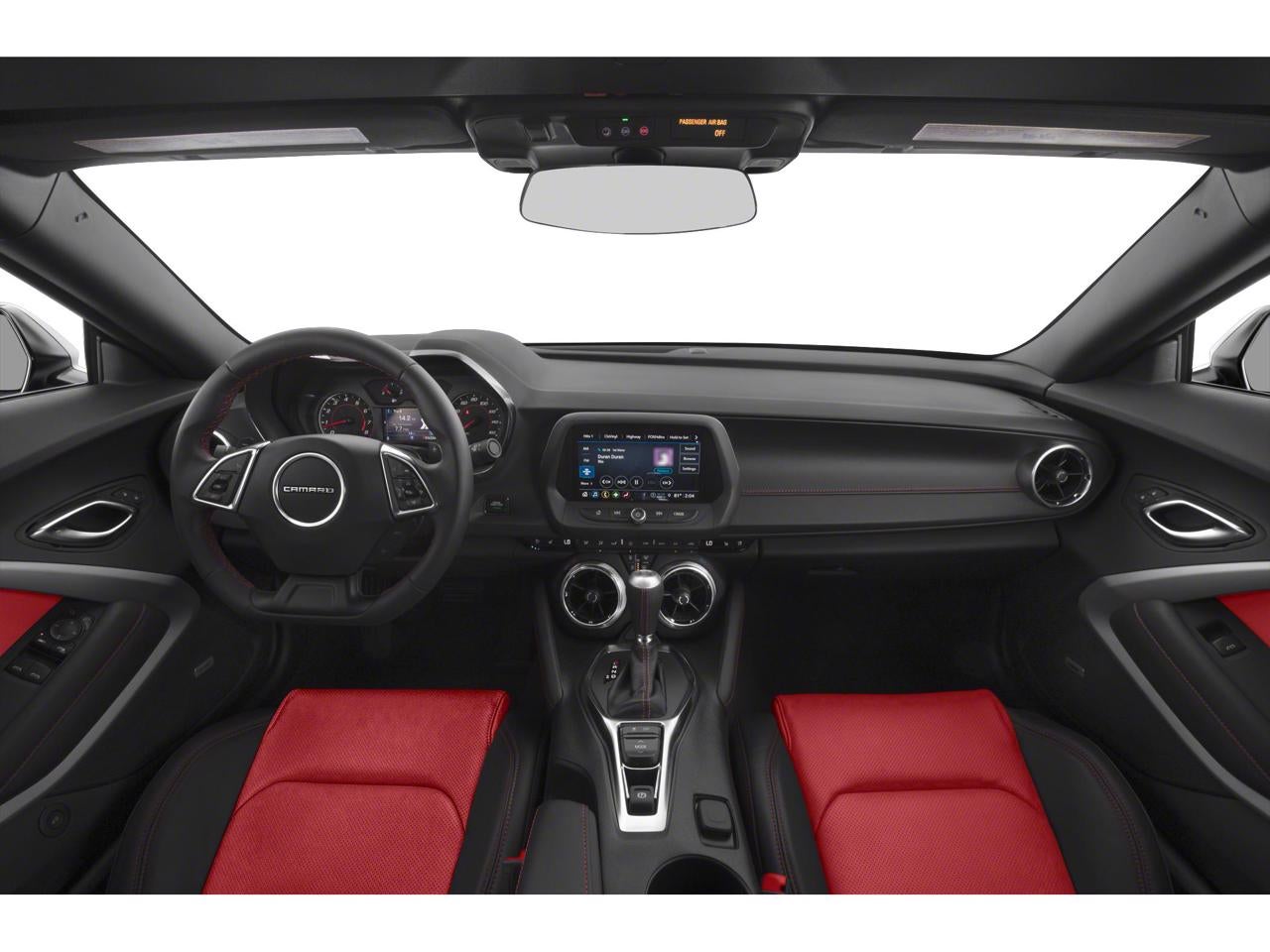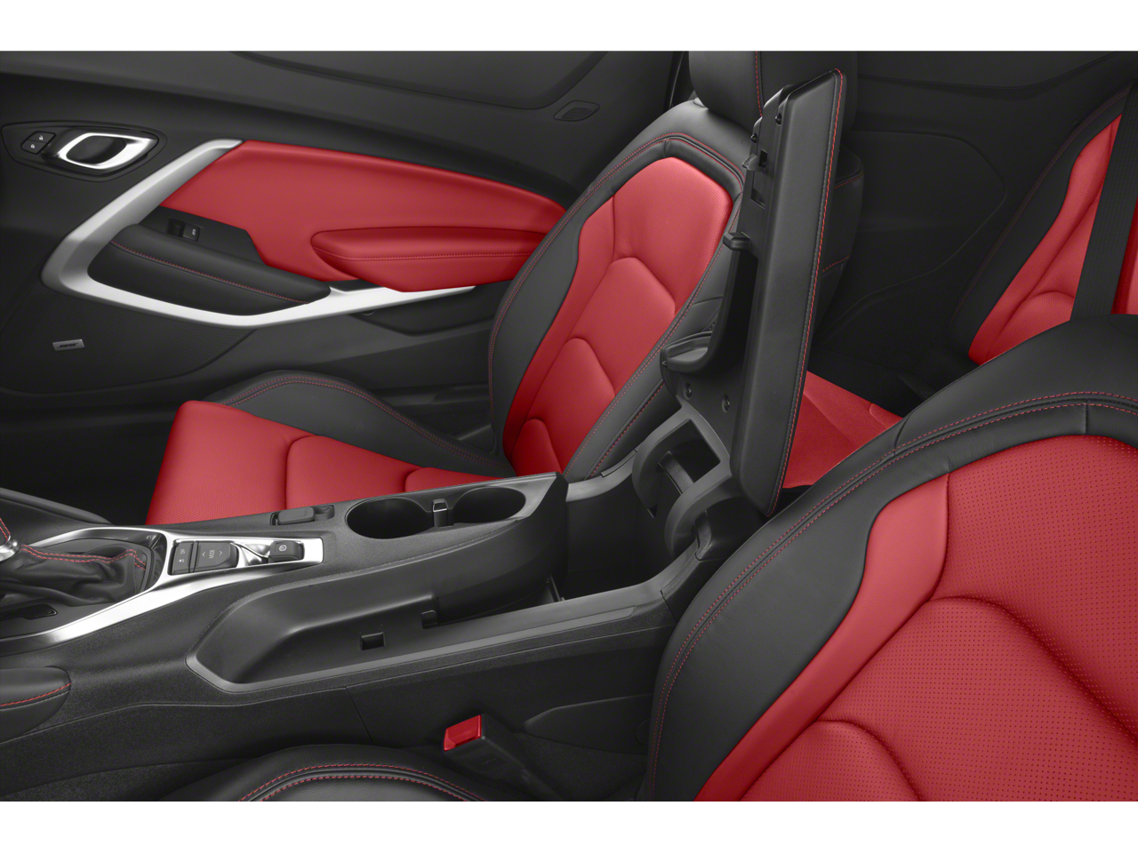 - Black interior with Adrenaline Red front seat inserts, door inserts and stitching on front seats, doors, steering wheel, shifter and center console