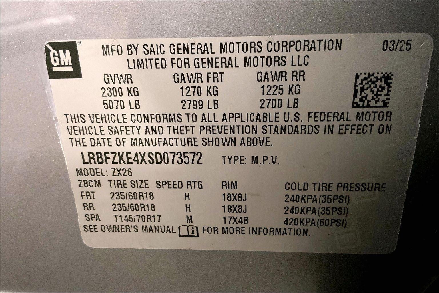 - Tires, P235/60R18 all-season