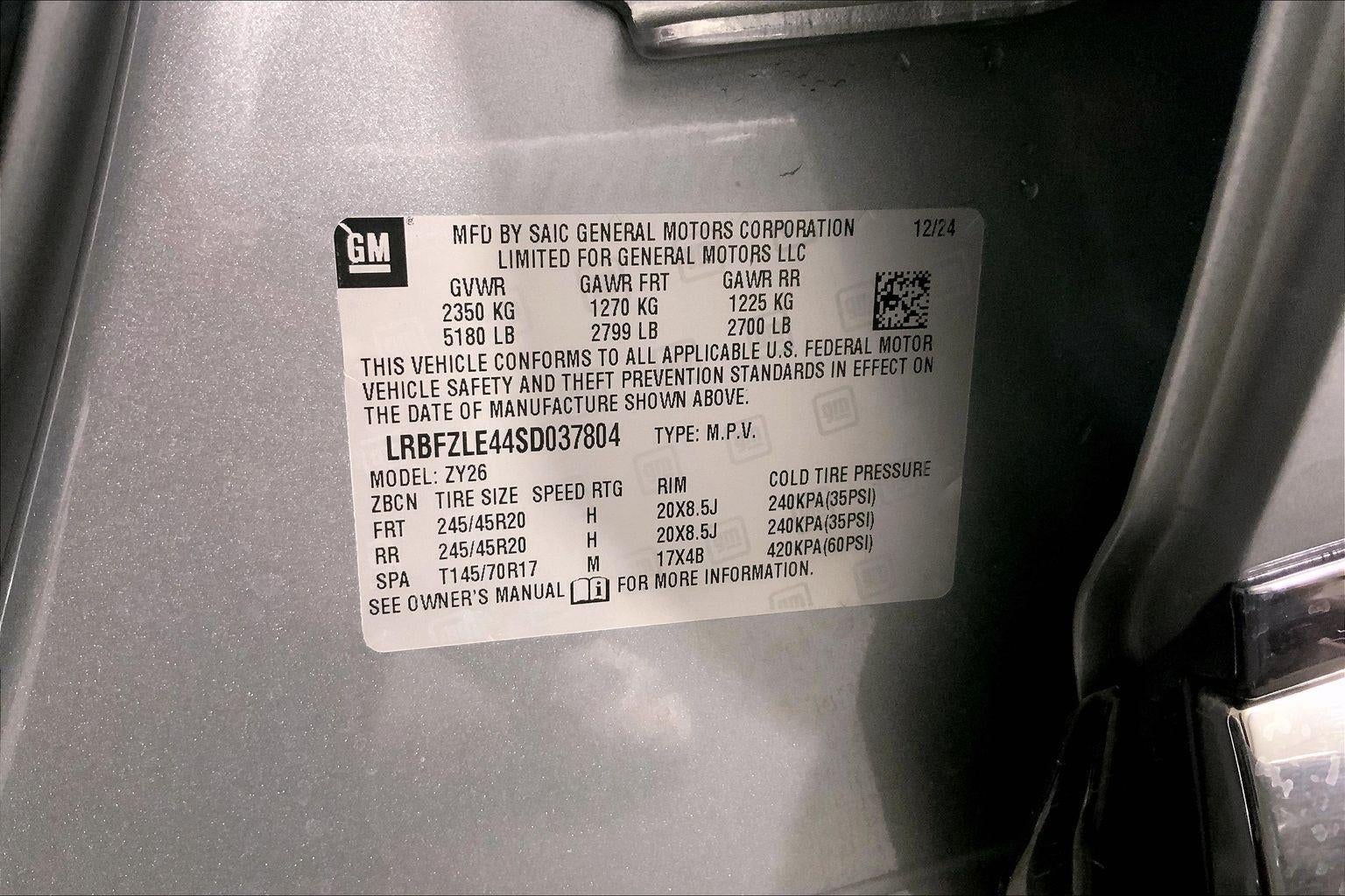 - Tires, P245/45R20 all-season