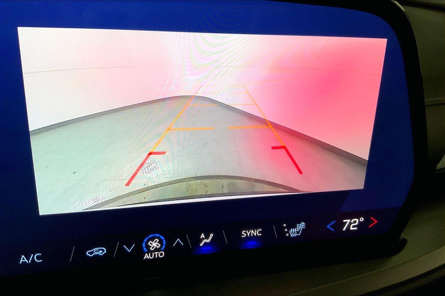 - The vehicle is equipped with a camera that displays an image of the area behind the vehicle on an interior display. The camera is equipped with its own washer.