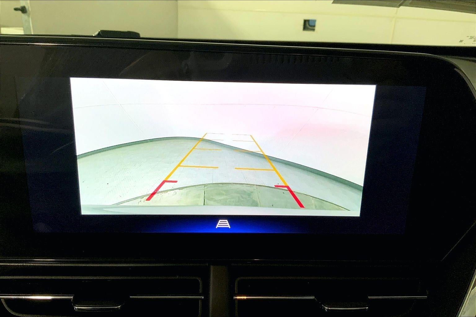 - The vehicle is equipped with a camera that displays an image of the area behind the vehicle on an interior display.